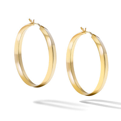 Designer Alice Cicolini's Major Defiant Hoop is a hoop that elevates the very idea of a hoop. With its striking silhouette and comfortable weight, it's a hoop with an edge. A hand-finished knife edge, to be exact.