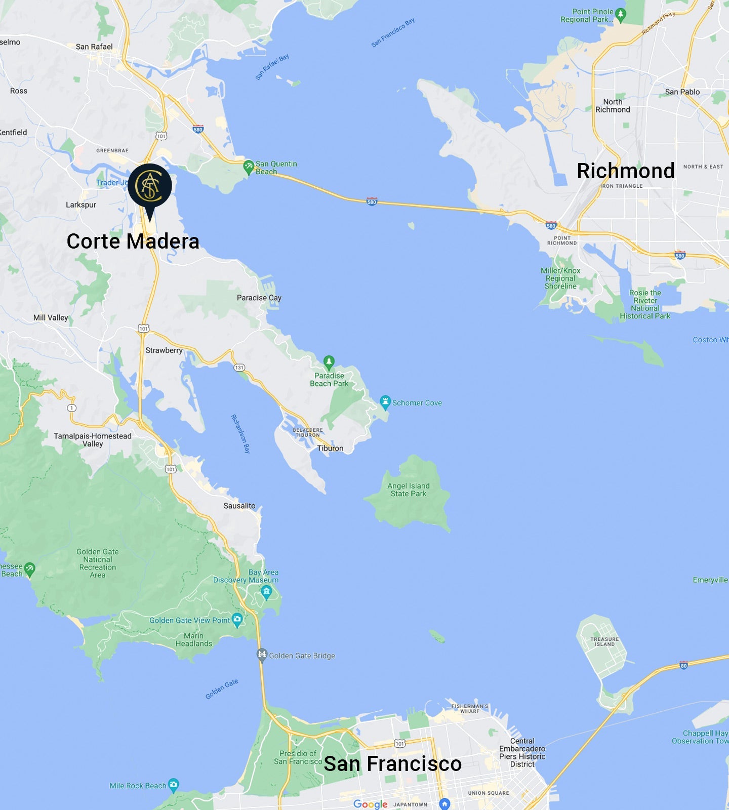 The Village at Corte Madera is an open-air shopping center in Marin County. You’ll find it directly off the 101 freeway, 8 miles north of the Golden Gate Bridge and San Francisco.