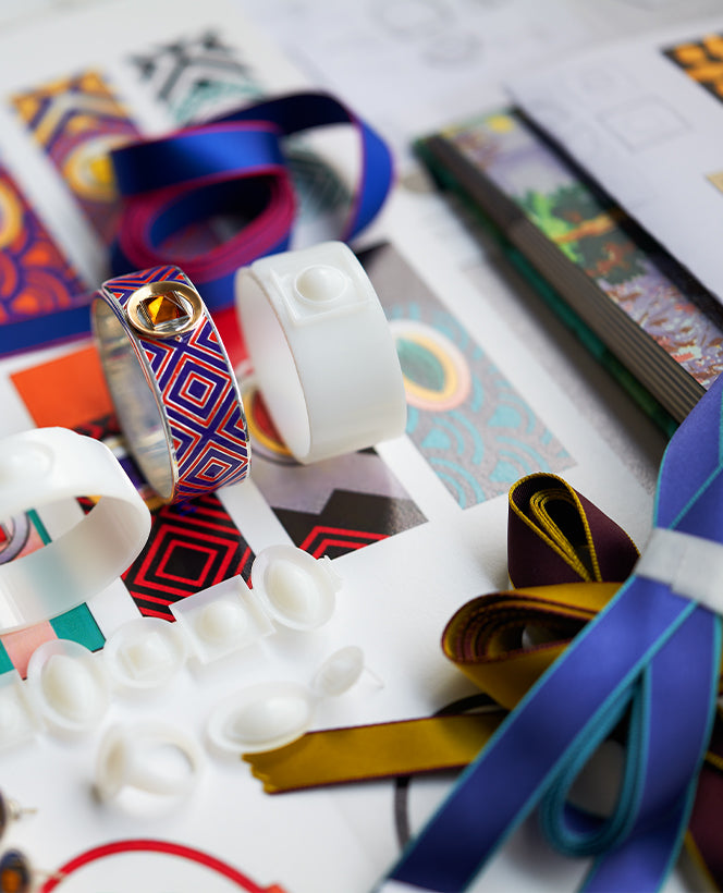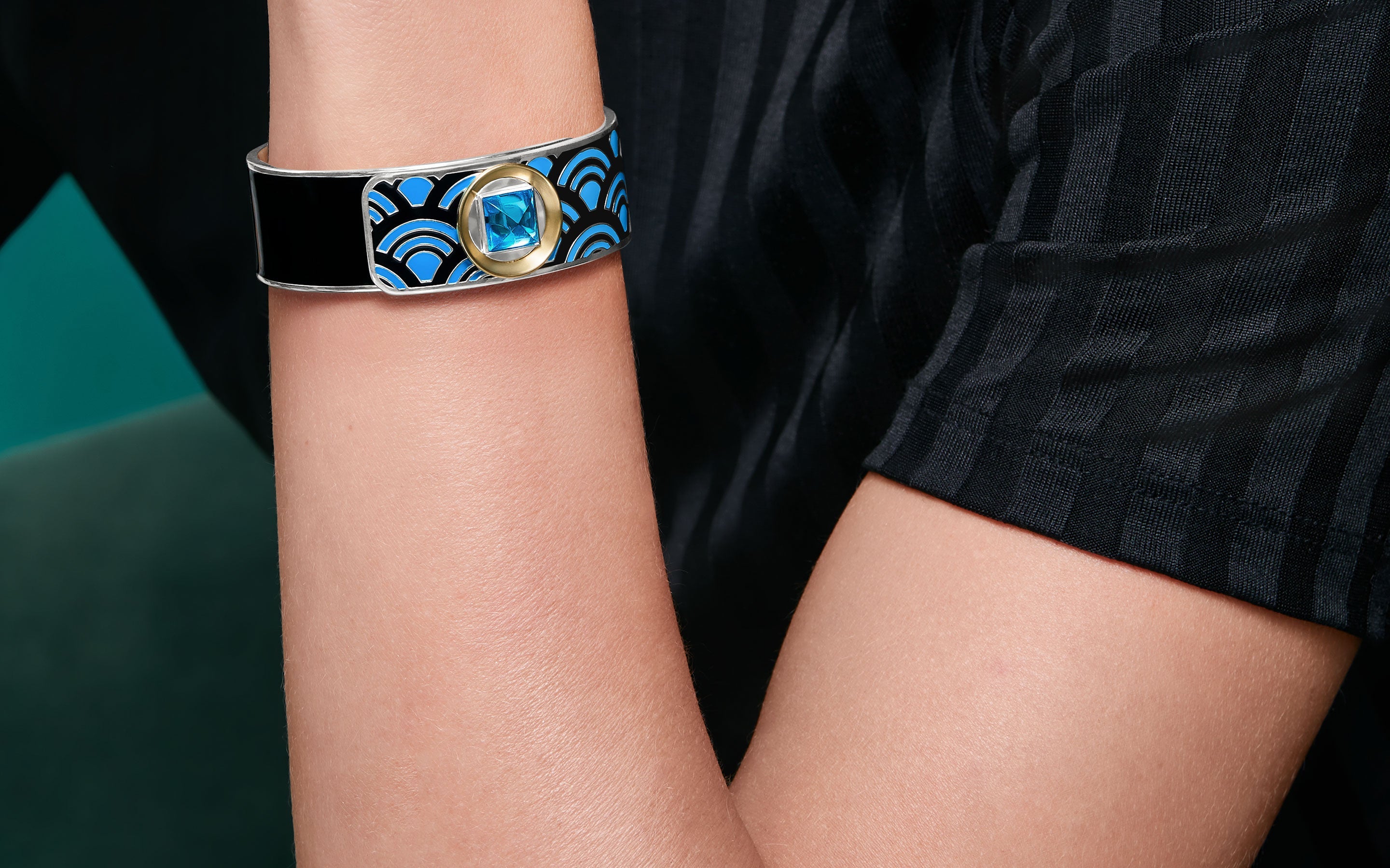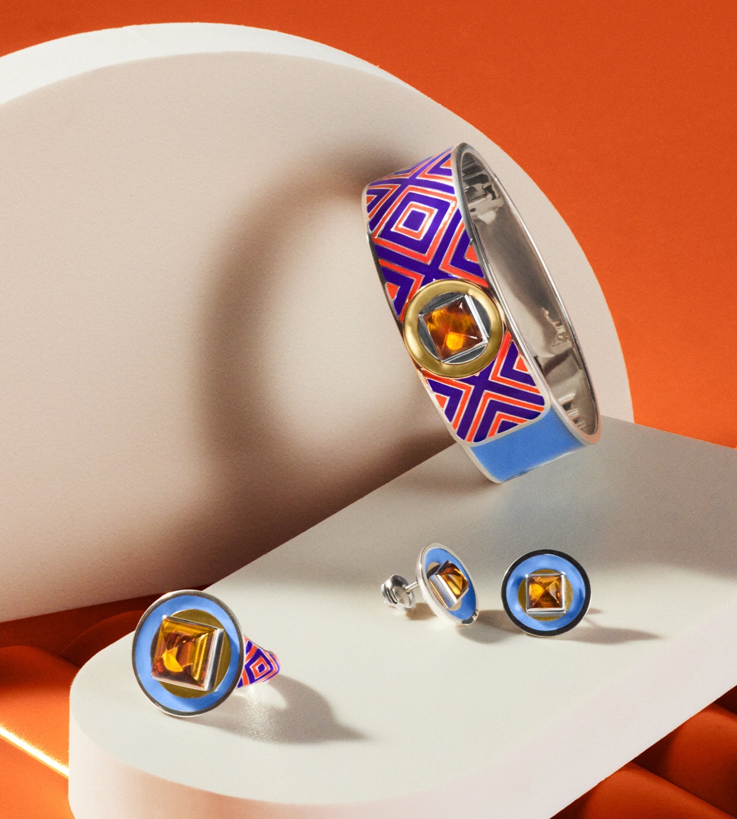 Designer Alice Cicolini is a connoisseur of craft. Her jewelry is inspired by the sacred architecture and patterns of the Silk Road. She’s also worked with one of the last Jaipuri meenakari trained in the enamel traditions of Persia. Alice brings this expressive style to the Mad Mod Collection, combining her brilliant enamel patterns with vibrant gemstones in a way no one else could.
