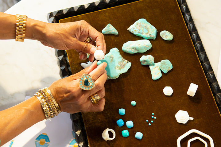 Every turquoise stone is hand-selected and matched for its color and marbling to create the perfect union of materials.