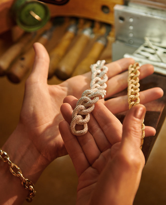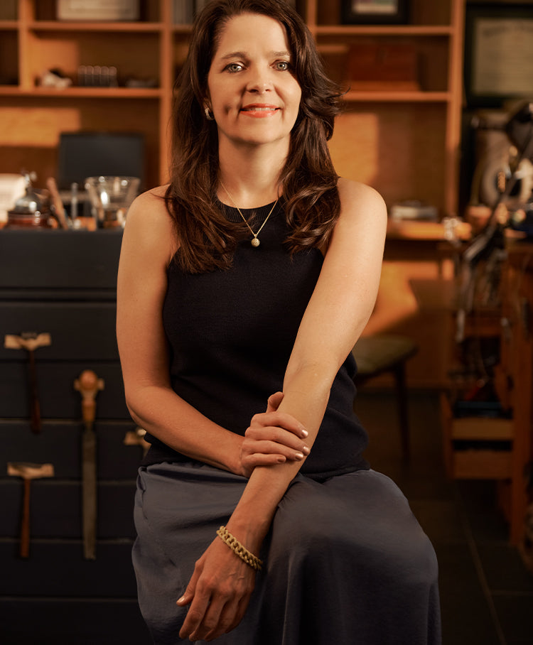For third-generation jewelry designer and goldsmith Kristy Ford, a simple form makes the biggest statement. Her inspiration comes from patterns and texture in mid-century architecture, often photographed on trips to Palm Springs and other design destinations. She has an incredible knack for translating architectural elements into intricate details, like this collection’s textural weave.